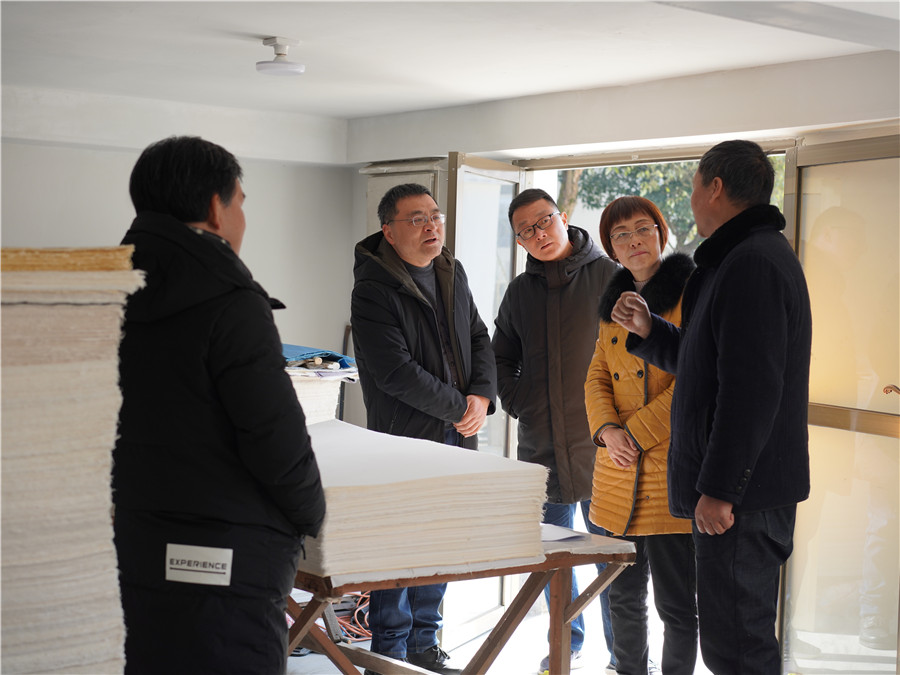 2021年1月26日,休寧縣政協主席儲曉華來公司調研徽州楮皮紙制作技藝傳承和發展情況。