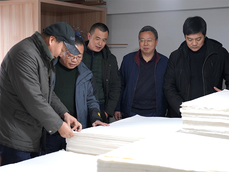 2021年元月12日,黃山市市原政協副主席,第一屆非遺研究會主席胡寧帶隊到公司調研徽州楮皮紙制作技藝。剛剛成立的市非遺研究會第一次調研活動安排到我公司是對我公司的關心,也是對我公非遺傳承工作的肯定。