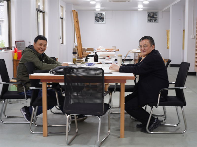 2021.4.14 中國科技大學人文與社會科學學院院長湯書昆來公司指導楮紙古法制作技藝。